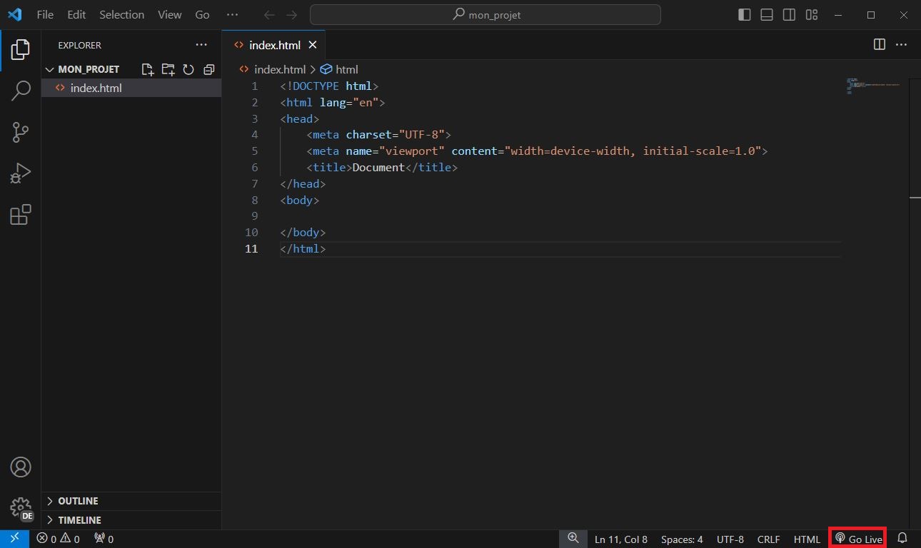 Vu qu'on se prépare à faire du web je vous propose de créer un fichier appelé index.html et d'y mettre le code suivant